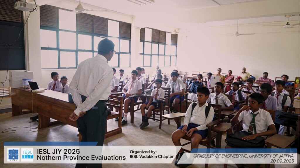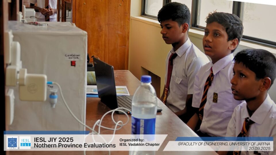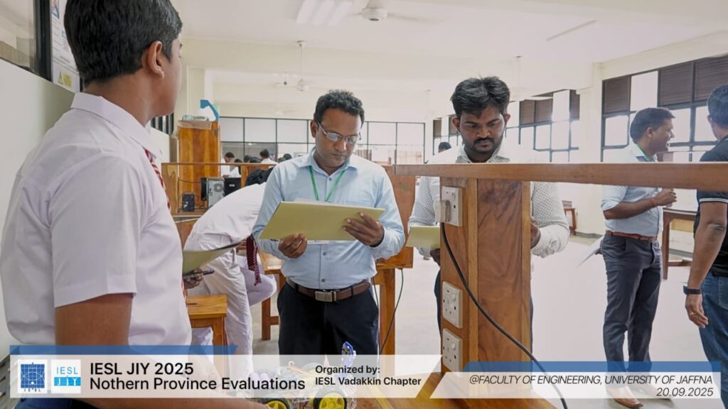 IESL (The institution of Engineers, SriLanka) வருடந்தோறும் தேசிய மட்டத்தில் நடத்துகின்ற இளைஞர்களுக்கான மாபெரும் புத்தாக்க போட்டி – 2025 தொடர்ச்சியாக 43 ஆவது ஆண்டாக இந்த ஆண்டு நடைபெறுகிறது. அதன் முதற்கட்டமாக வட பிராந்திய மட்ட போட்டிகள் கடந்த சனிக்கிழமை 20.09.2025 அன்று காலை 9.00 மணிமுதல் யாழ்ப்பாண பல்கலைக்கழகத்தின் கிளிநொச்சியில் அமைந்துள்ள பொறியியல் பீடத்தில் வெகுசிறப்பாக நடைபெற்றது. யாழ்ப்பாணம், மன்னார், கிளிநொச்சி, முல்லைத்தீவு, வவுனியா உள்ளிட்ட மாவட்டங்களில் இருந்து பெருமளவு மாணவர்கள் கலந்து கொண்டு தங்கள் புத்தாக்க கண்டுபிடிப்புக்களை காட்சிப்படுத்தினார்கள்.